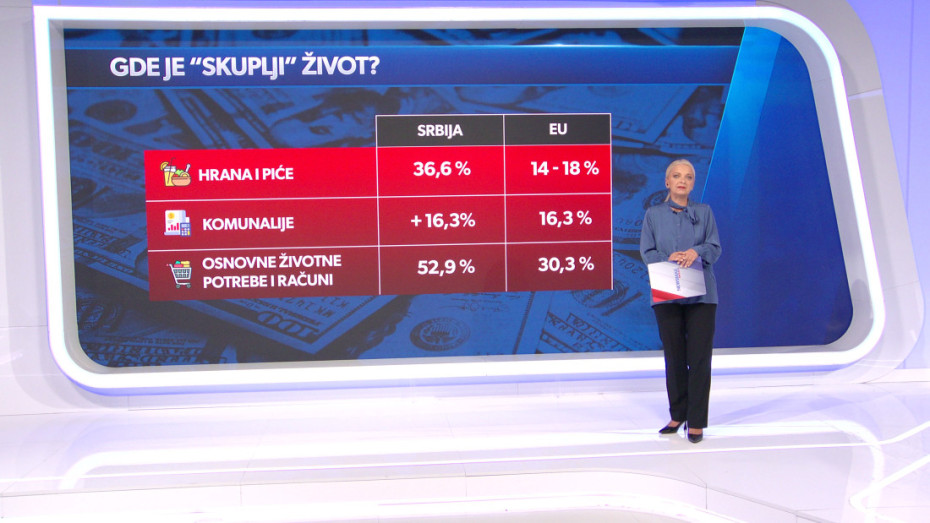 U Srbiji trošimo 36,6 odsto prosečne plate za hranu i piće i 16,3 odsto prosečne plate za komunalije, što je više od polovine prosečne plate u Srbiji, odnosno 52,9 odsto.