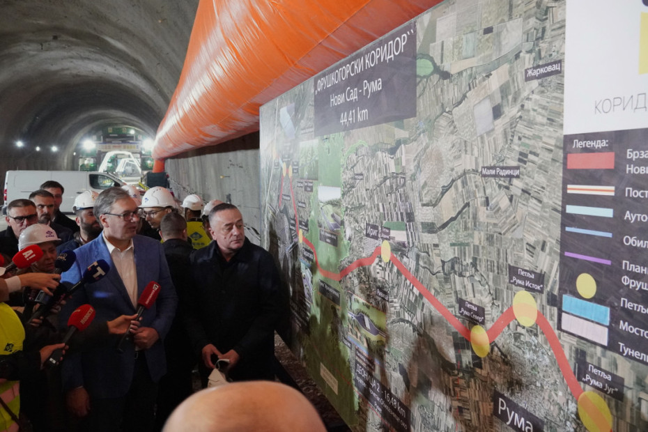 Vučić je izjavio da će završetak izgradnje tunela "Iriški venac" u okviru projekta za izgradnju brze saobraćajnice Novi Sad - Ruma na Fruškogorskom koridoru, omogućiti da vožnja preko Fruške gore bude kraća.