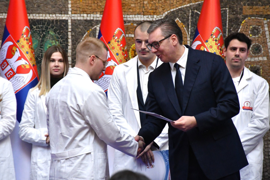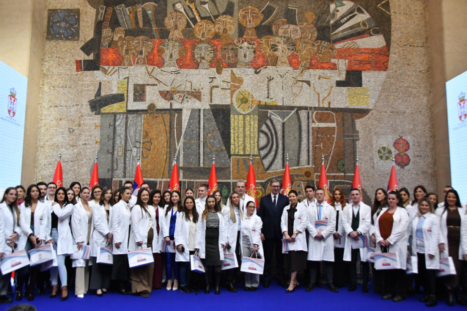 Predsednik Srbije istakao je, na svečanom prijemu u Palati Srbija povodom dodele ugovora o radu najboljim diplomcima medicinskih fakulteta i srednjih medicinskih škola, da je do sada tako zaposleno više od 5.000 ljudi i istakao da će država nastaviti da povećava plate zdravstvenim radnicima.