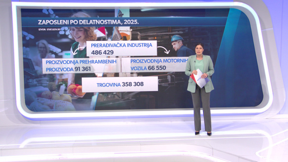 Gledano po delatnostima, najviše zaposlenih u Srbiji i dalje ima prerađivačka industrija, sa skoro pola miliona radnika, iako je u odnosu na 2024. godinu taj broj smanjen za više od 11.000.