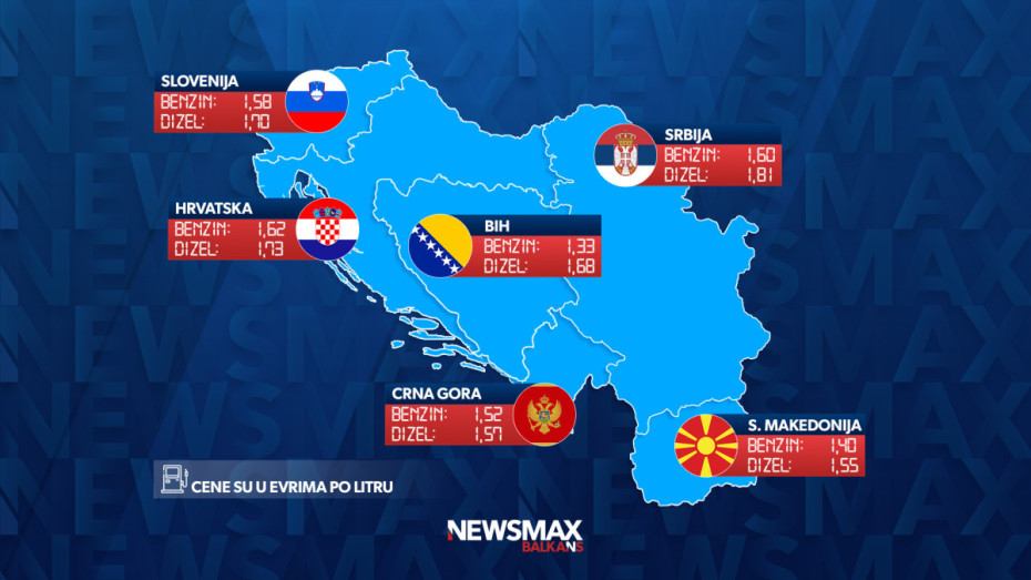 Osnovni benzin u Severnoj Makedoniji je 1,40 evra po litru, dok cene goriva u Bosni i Hercegovini nisu ujednačene, a prosečna cena benzina od 95 oktana u Federaciji BiH, prema podacima koje je objavilo Federalno ministarstvo trgovine, iznosi 1,33 evra.