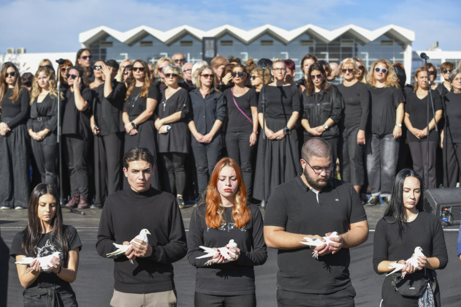 In front of the Railway Station, students and citizens who arrived from different parts of the city laid wreaths and lit candles. Students and groups of citizens carried large red hearts with the names of the victims written on them.