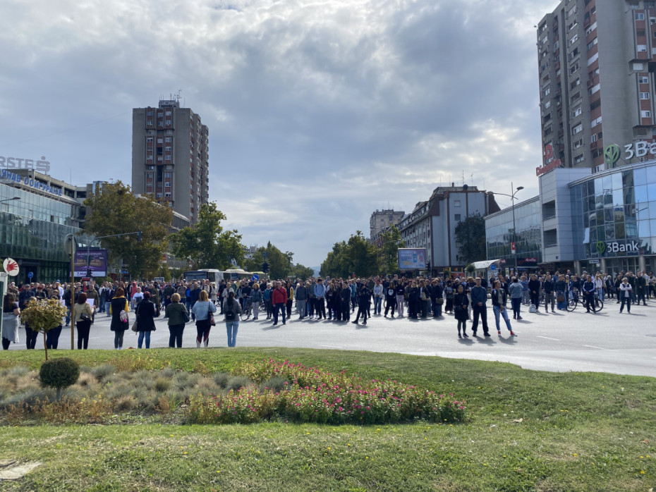 I na Bulevaru oslobođenja kod Fakulteta organizacionih nauka studenti su takođe održali komemorativan skup.