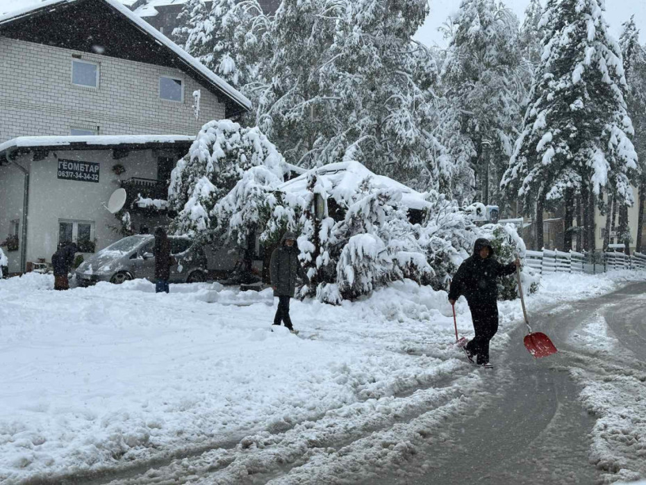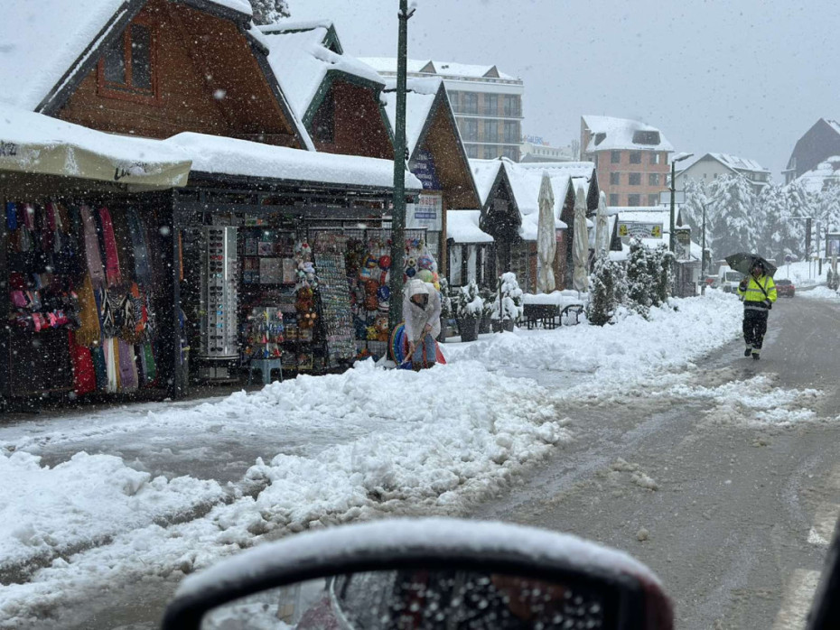 Sneg koji veje napravio je ozbiljne probleme na Zlatiboru, tako da je u jednom trenutku saobraćaj bio u prekidu. Sneg je mokar i težak te obara drveće i granje, i ekipe JP "Putevi Užice" su u akciji sklanjanja prepreka.