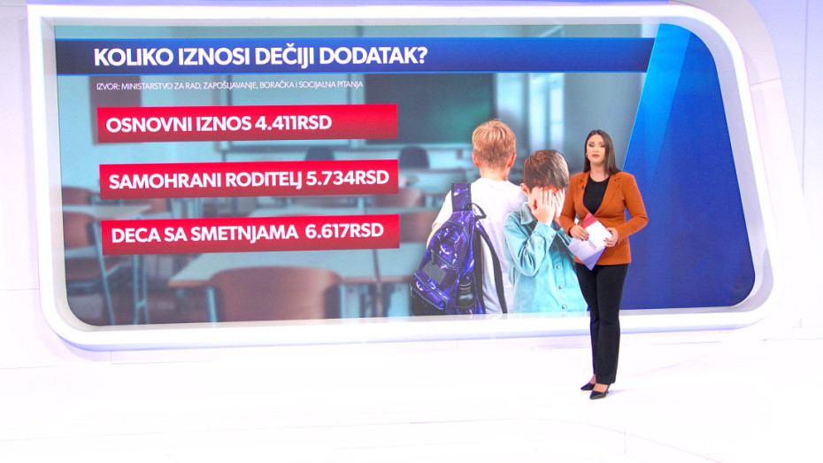 Osnovni iznos dečjeg dodatka u Srbiji je 4.411 dinara. Za samohrane roditelje, država "dodaje" još nešto i iznos raste na 5.734 dinara, a roditelji dece sa smetnjama u razvoju mogu da računaju na 6.617 mesečno.