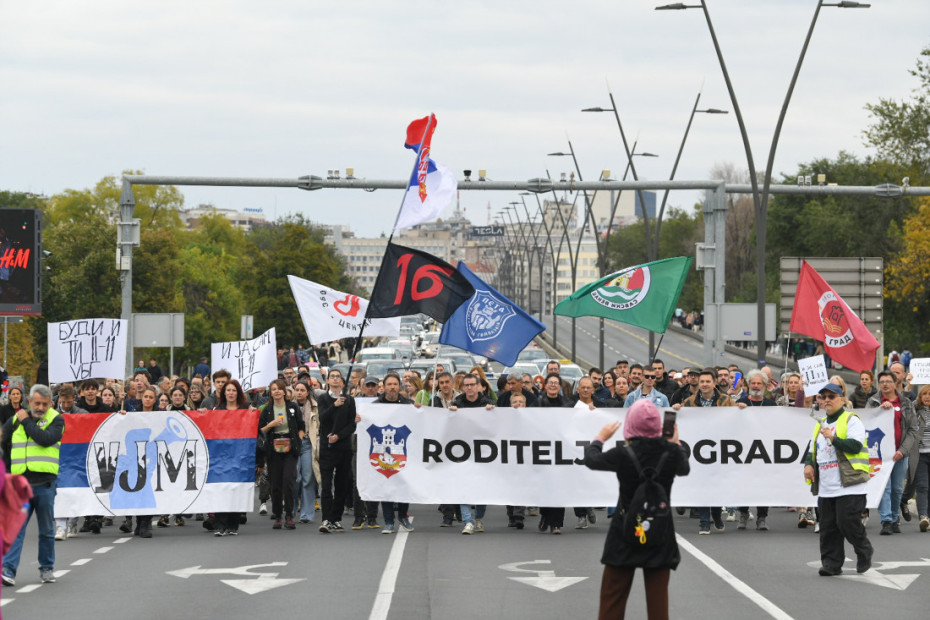 Zborovi građana Beograda blokirali su oko 16 časova kružni tok kod Tržnog centra Ušće, a sa njima se nekoliko minuta kasnije spojila grupa koja došla iz centra grada i nosila transparent "Roditelji Beograda". Građani su se okupili kako bi dali podršku prosvetnim radnicima.