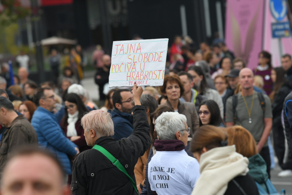 (FOTO) Protest podrške prosvetnim radnicima kod TC Ušće: Blokiran kružni tok, održano 16 minuta tišine