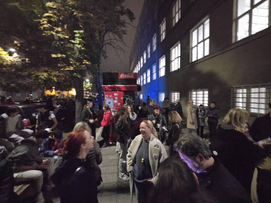 Građani i učenici su se okupili ispred Pete gimnazije nakon što su studenti u blokadi i profil "Blokada Pete beogradske gimnazije" podelili na mreži Instagram objavu u kojoj najavljuju da "kreće fizička blokada Pete".