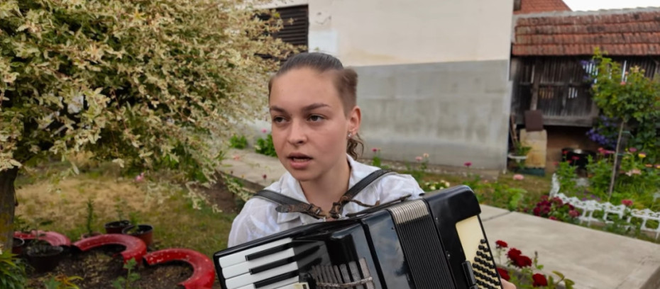 Sara Krasić iz Donje Kravarice ima samo 17 godina, ali već svira kao neko ko u tonovima nalazi dušu. Harmonika, truba, klavijature, svaki instrument govori njenim jezikom, jezikom emocije, rada i pripadnosti.