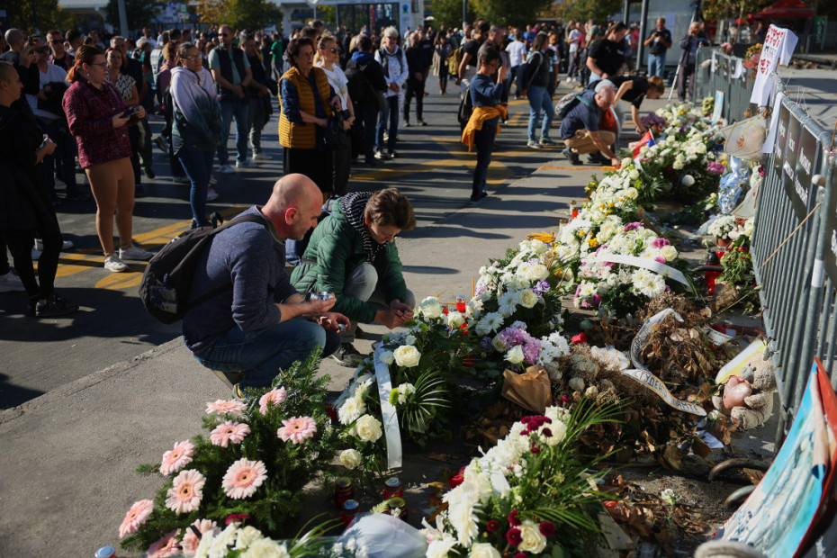 Tišina pred zgradom železničke stanice trajala je do 12.08 sati, kada su građani nastavili da polažu cveće i pale sveće na mestu stradanja 16 osoba.