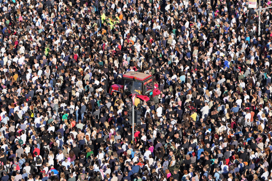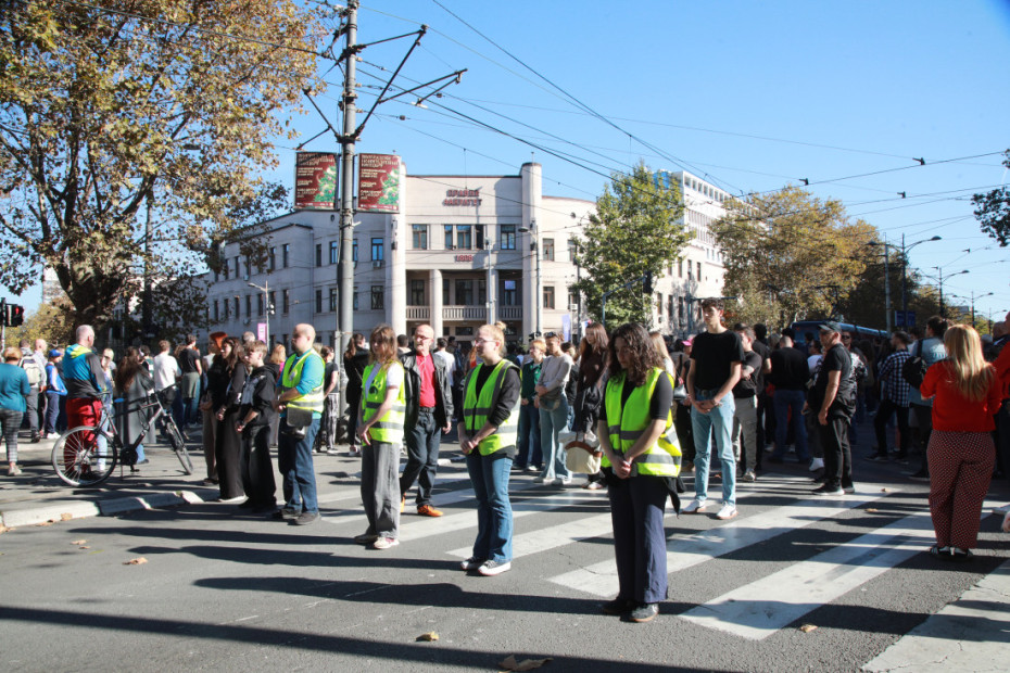Nekoliko stotina studenata i građana blokiralo je raskrsnicu Bulevara kralja Aleksandra i Beogradske ulice ispred Pravnog fakulteta u Beogradu, kako bi šesnestiminutnom tišinom odali poštu stradalima od 11.52 do 12.08 sati.