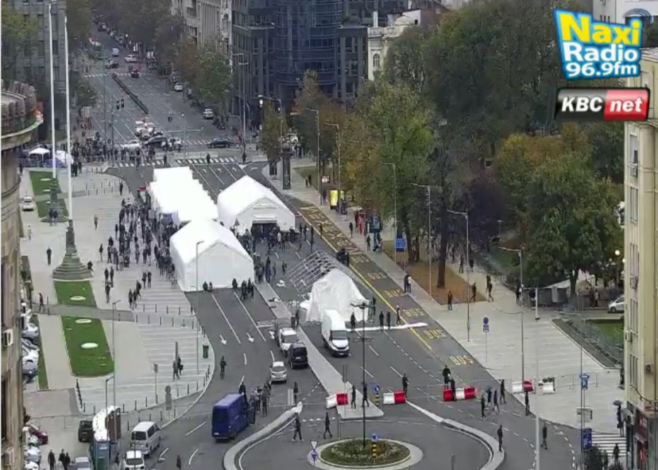 Na kolovozu ispred Doma Narodne skupštine tokom popodneva postavljen je još jedan šator.