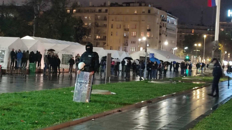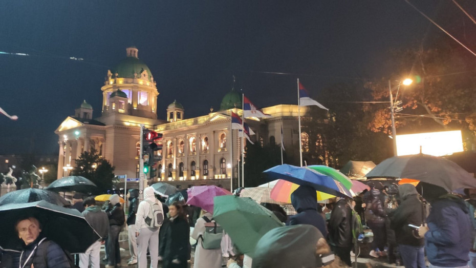 Mirno ispred Skupštine Srbije: Blokirana raskrsnica Takovske i Bulevara, iz Pionirskog parka se čuje glasna muzika