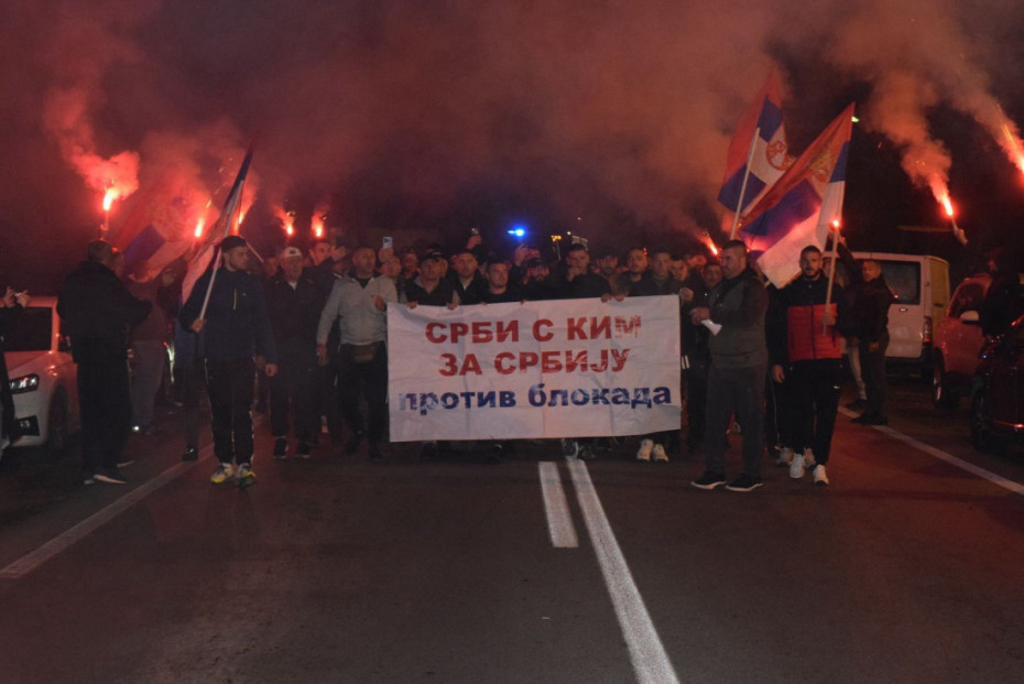 Oni su u Barajevo ušetali sa transparentom "Srbi sa KiM za Srbiju protiv blokada".