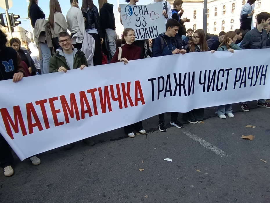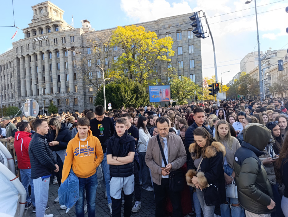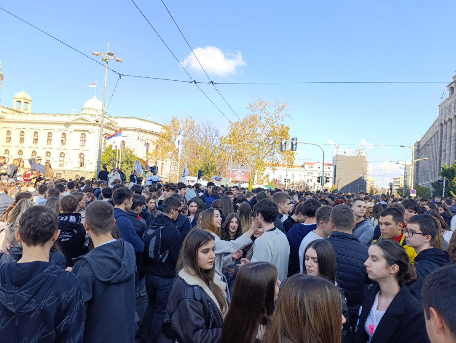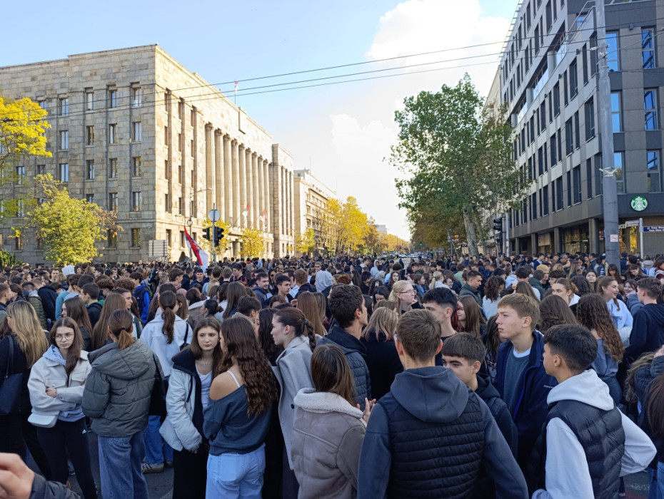 Oko 11 časova okupljenima su se pridružile dve grupe srednjoškolaca - jedna je pristigla Bulevarom kralja Aleksandra, a druga Takovskom ulicom.