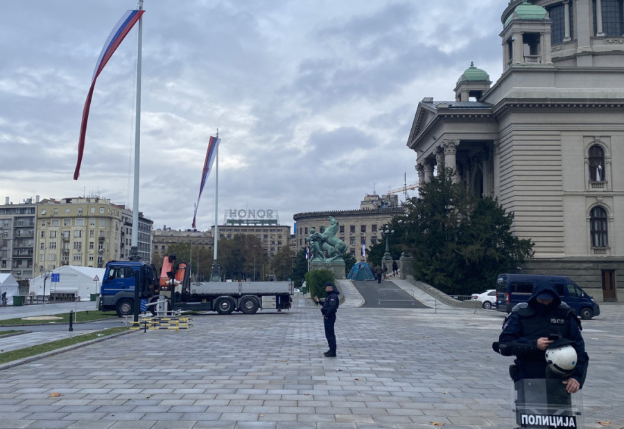 Prostor ispred Skupštine i Pionirski park obezbeđuje veliki broj pripadnika MUP.