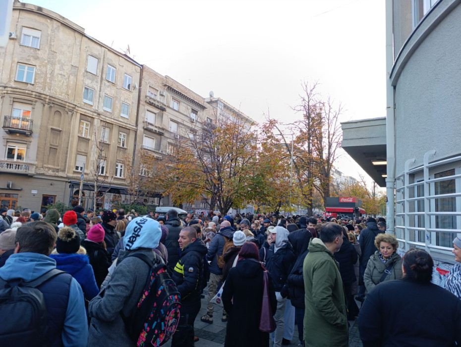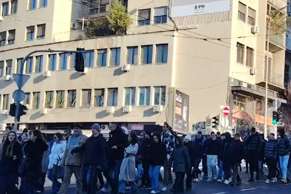 Okupljene, u znak protesta zbog odluke da nakon učeničke blokade gimnazije nastava počne u zgradama dve osnovne škole, na šetnju do Ministarstva pozvao je predsednik Saveta roditelja Pete beogradske gimnazije Nemanja Milošević.