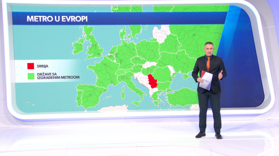 Na mapi Evrope gotovo sve zemlje označene su zelenom bojom - Pariz, Berlin, Budimpešta, Bukurešt, Sofija... London je metro dobio još davne 1863. godine. Jedina zemlja na toj mapi bez podzemne železnice označena je crvenom bojom i to je Srbija.