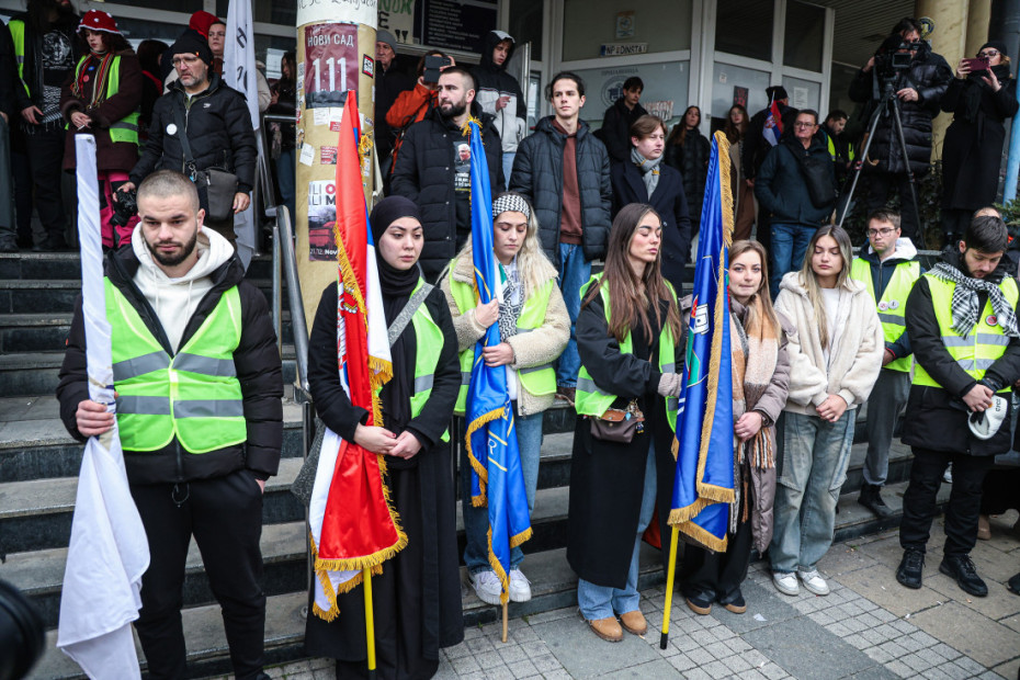 Na protestu ispred Državnog univerziteta u Novom Pazaru održano je 18 minuta tišine u znak sećanja na 16 žrtava stradalih u padu nadstrešnice na novosadskoj železničkoj stanici i dvoje studenata koji su tragično nastradali.