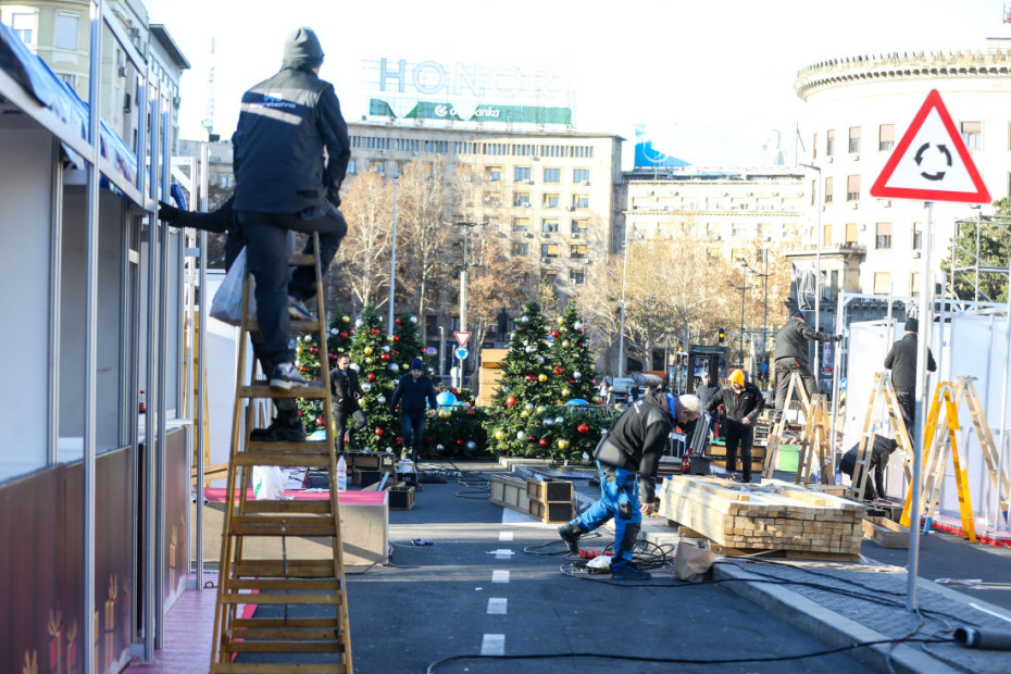 (FOTO) Uklonjeni šatori ispred Skupštine Srbije, postavljeni štandovi za Božićno selo