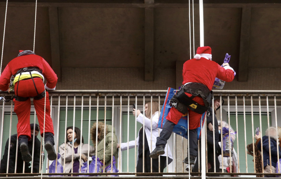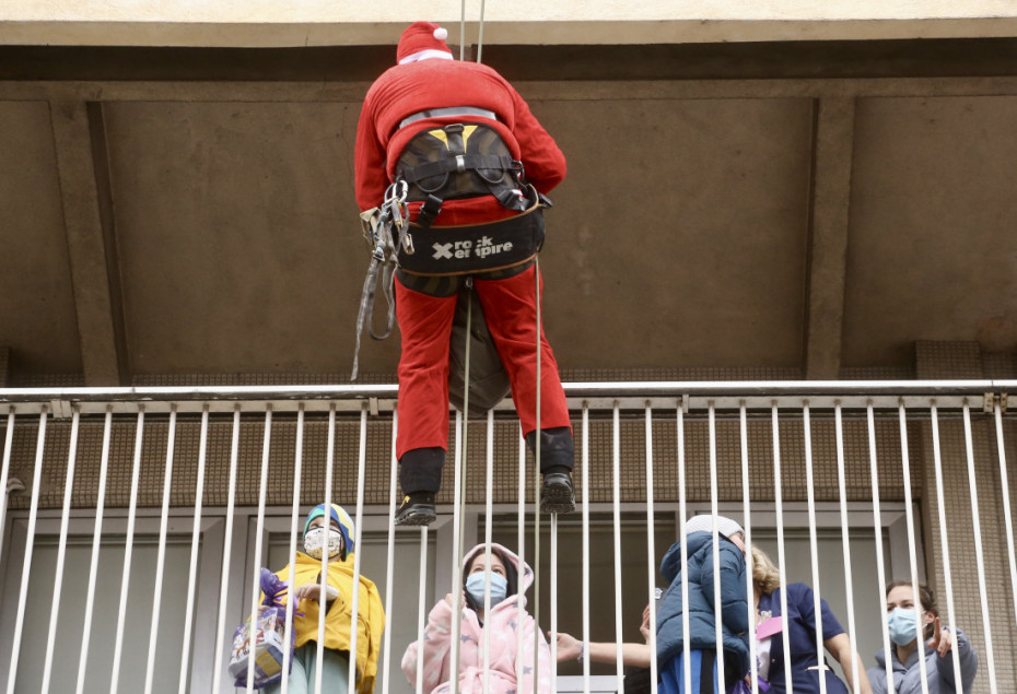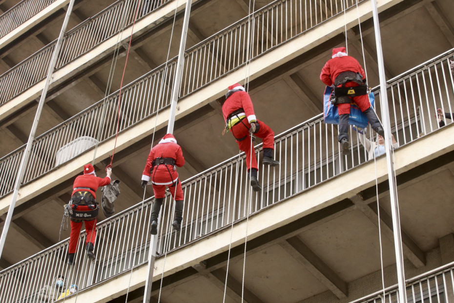 Pripadnici Specijalne antiterorističke jedinice (SAJ) spustili su se užadima sa krova Instituta za majku i dete obučeni kao Deda Mrazovi i obradovali poklonima mališane koji su na lečenju na Institutu.