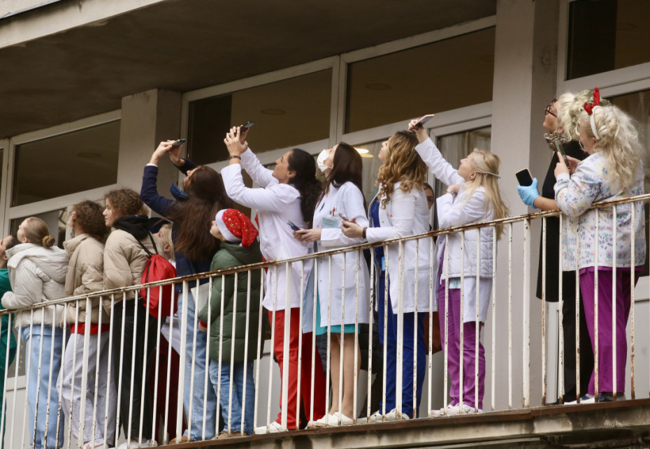 "Zaista nesvakidašan događaj, da Deda Mrazovi sa fasade Insituta nastupaju i dele poklone. Četvrta godina zaredom, već dobra tradicija", rekao je Softić.