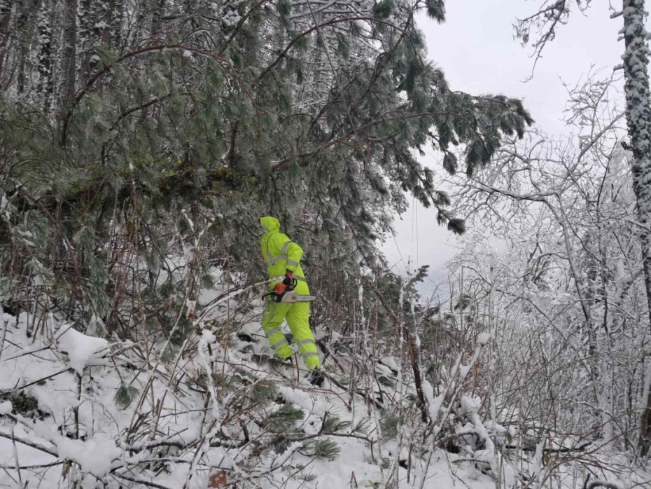 Pod težinom vlažnog i teškog snega došlo je do lomljenja grana i obaranja stabala, koja padaju na vodove i stubove, što dodatno otežava rad na terenu i produžava prekide u snabdevanju električnom energijom, navedeno je u objavi.