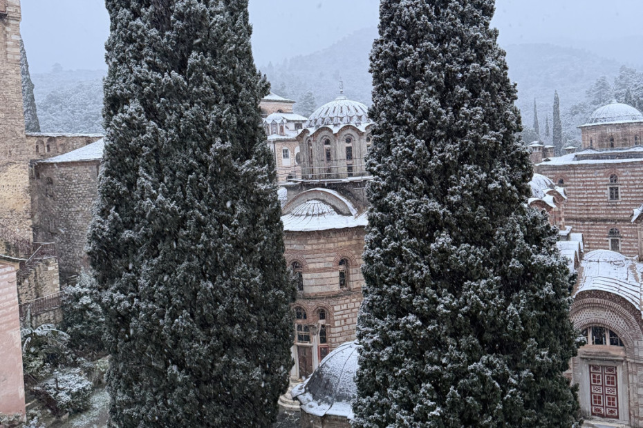 U manastiru Hilandar došlo je do izuzetno retke pojave za to područje - pao je sneg i iznenadio bratiju manastira. Hilandarski monasi pamte poslednje snežne padavine uoči Božića 2017. godine.