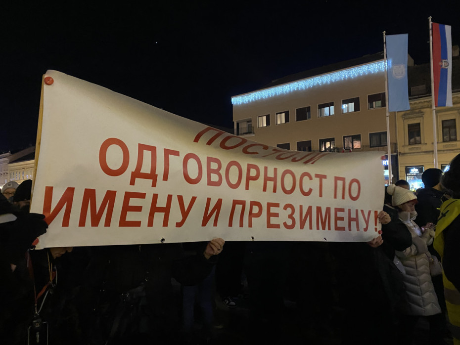 (FOTO) "Šta znači pobeda?": Protest studenata u blokadi u Novom Sadu