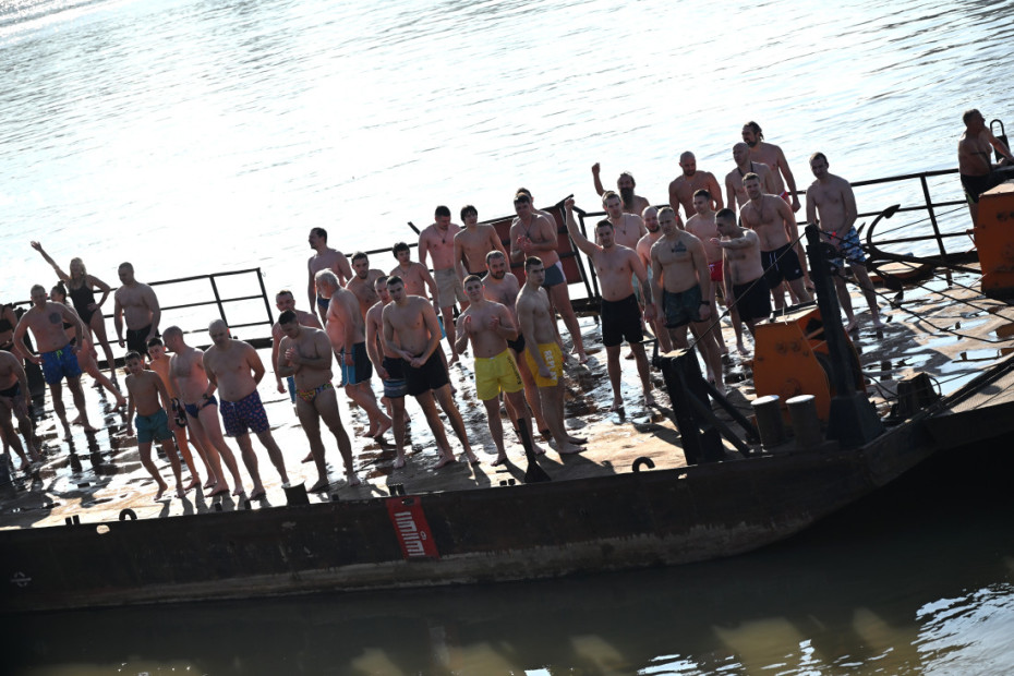 (FOTO) Plivanje za Časni krst ispod Beogradske tvrđave: Učesnici ga izneli zajedno
