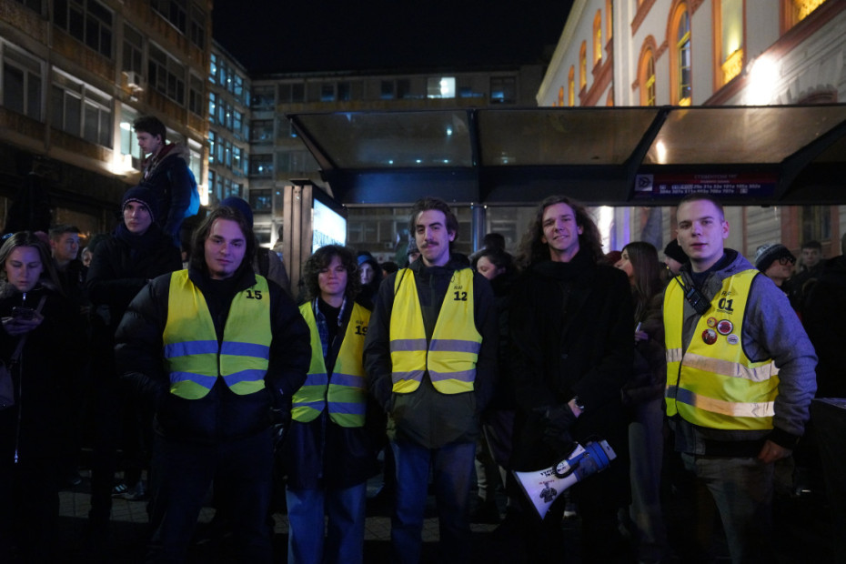 Grupe studenata u blokadi okupile su se prethodno na nekoliko lokacija u gradu, između ostalog ispred Pravnog fakulteta i kod kružnog toka na Novom Beogradu, odakle su stigle pred Rektorat.