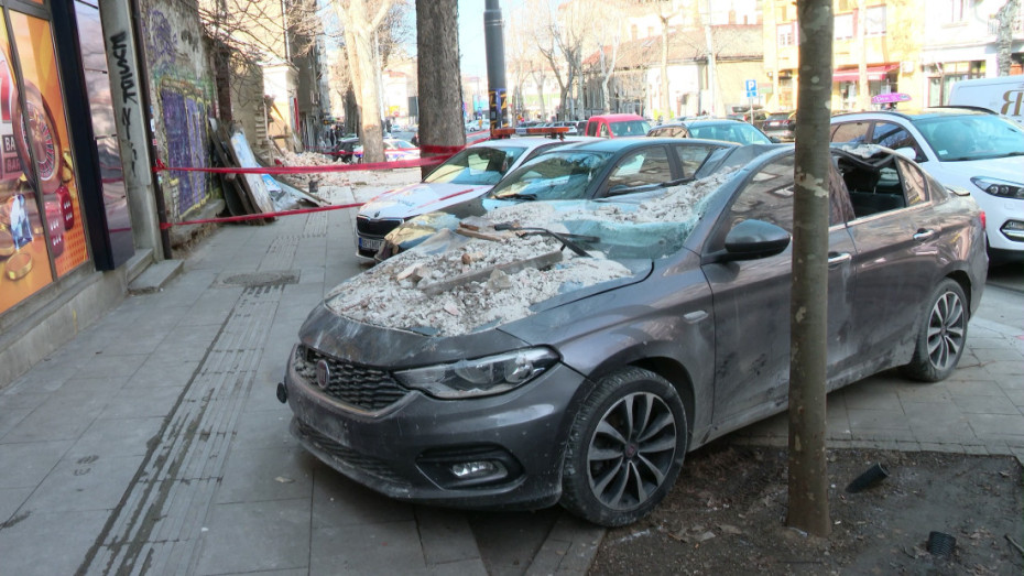 Četiri automobila oštećena prilikom urušavanja izmeštena su sa kolovoza i trenutno se nalaze parkirana sa strane, dok se iza zaštitne trake i dalje nalazi neraščišćen deo srušenog objekta. Sva je sreća što niko nije povređen.