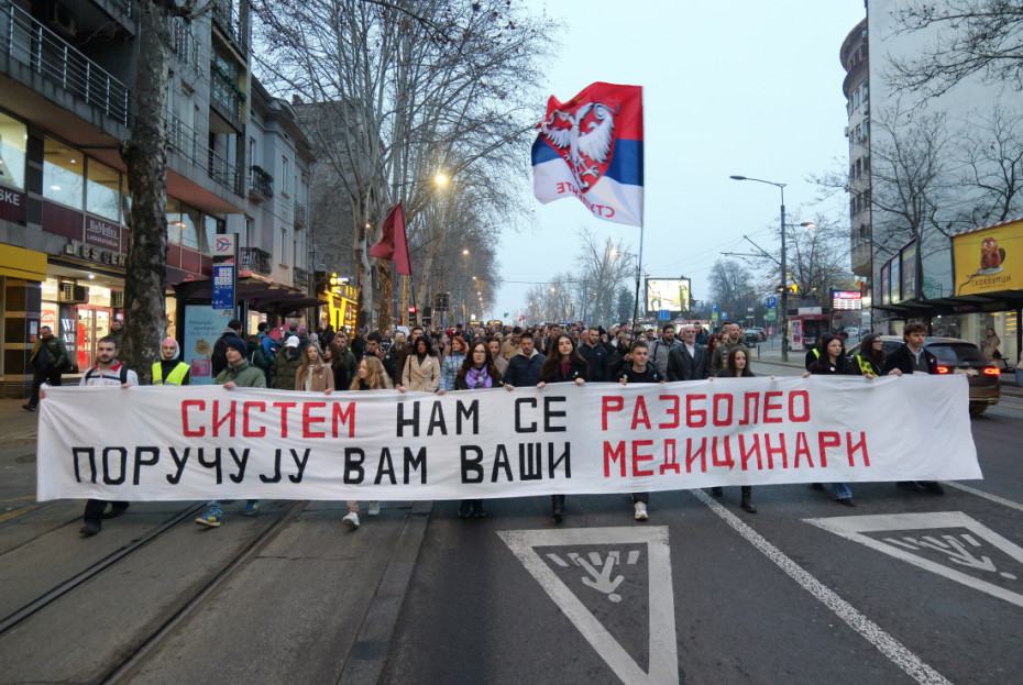 Na čelu kolone nosili su transparent "Sistem nam se razboleo, poručuju vam vaši medicinari".