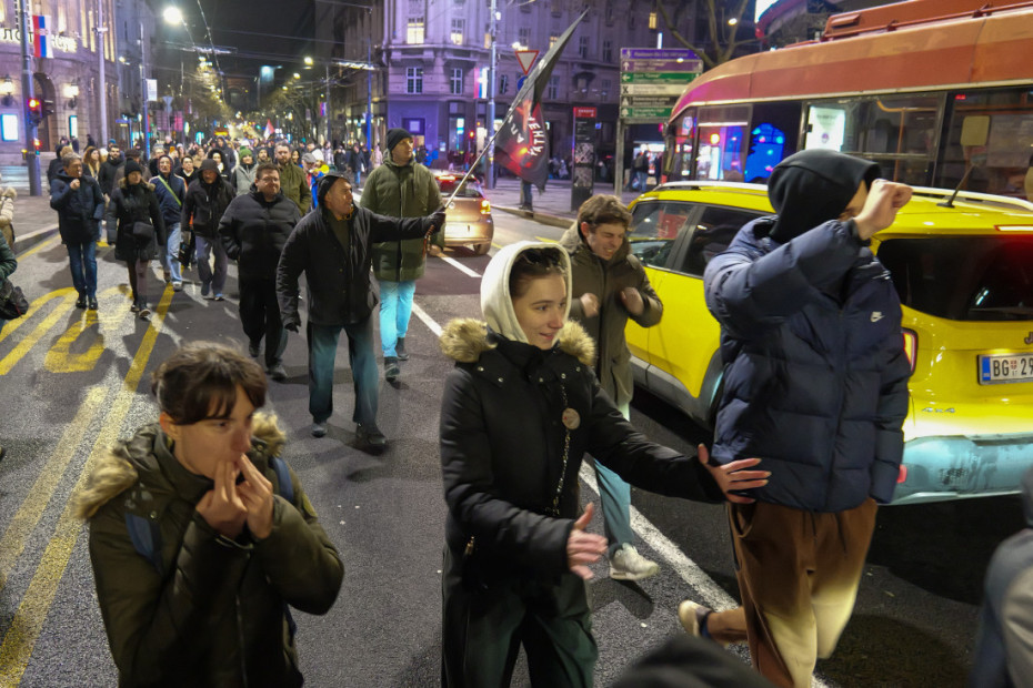 Grupa građana i studenata koja je krenula od raskrsnice Kneza Miloša i Birčaninove stigla je do okupljenih u Novom Beogradu, na uglu Bulevara Nikole Tesle i Trešnjinog cveta.