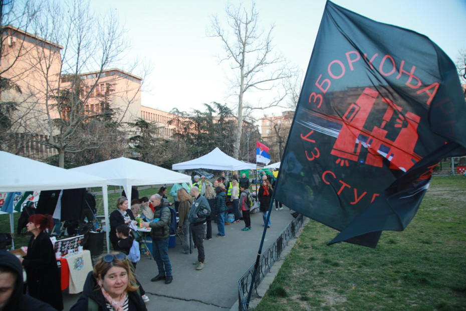 Beogradski bazar se održava od 16 do 22 sata u Studentskom parku, gde je postavljeno više od 20 štandova grupa građana iz beogradskih opština, fakulteta Univerziteta u Beogradu i organizacija koje podržavaju studentski i građanski pokret, među kojima su IT blokada, Zajednica umetnosti i kulture, Savez ekoloških organizacija Srbije, Rendžeri Istočne Srbije, Društveni front.
