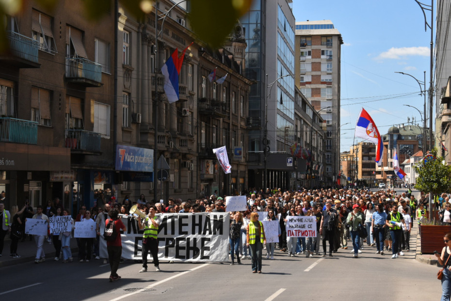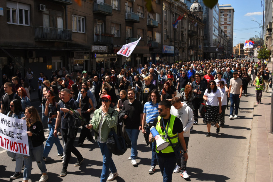 Studenti su protest nastavili šetnjom do Filozofskog fakulteta, gde je zatim održana tribina "Pitanje nacionalnog identiteta i problem identitetskih studija".