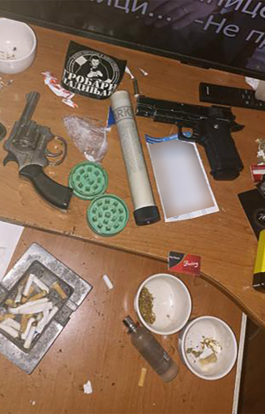 Kako se navodi, tokom pretresa je pronađeno više komada vatrenog oružja, pirotehnička stedstva i određena količina različite opojne droge.