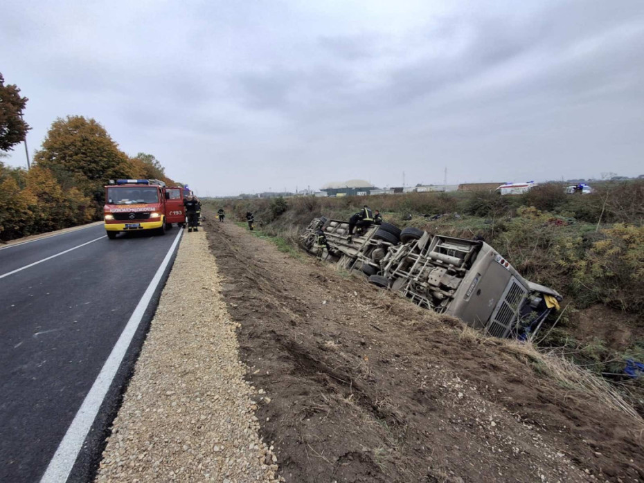 Autobus prevoznika "Sirmium bus", koji je prevozio radnike firme "HealthCare", iz za sada nepoznatih razloga sleteo je sa puta i prevrnuo se na krov.