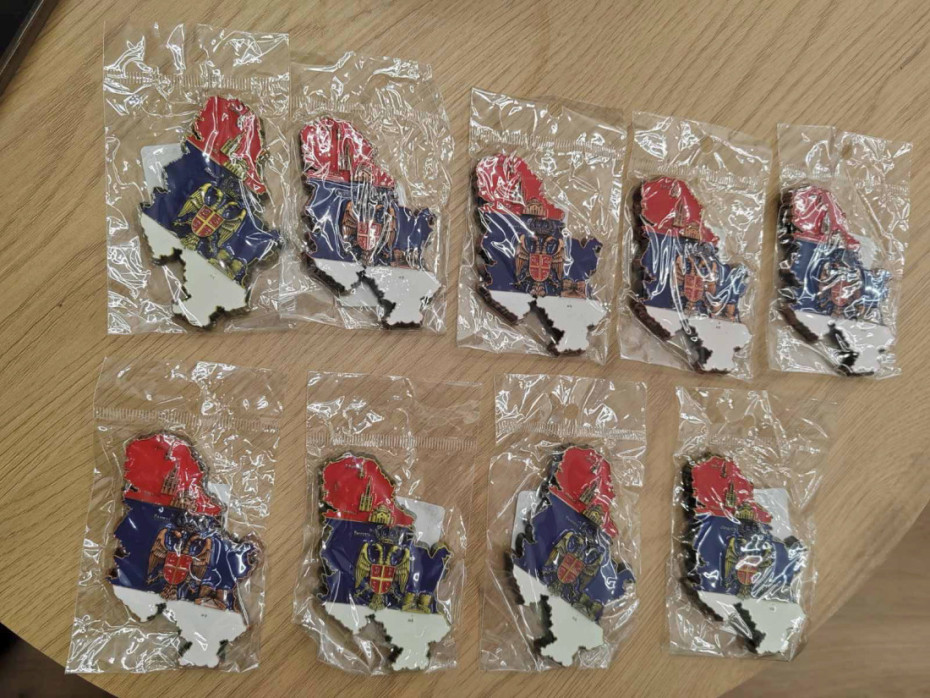 Tokom kontrole, kako se navodi u saopštenju, utvrđeno je da se u prometu nalazi roba suprotna propisima, pa je van prometa stavljen 871 magnet i privezak sa državnim simbolima Srbije, kao i devet magneta u obliku Srbije bez Kosova i Metohije.
