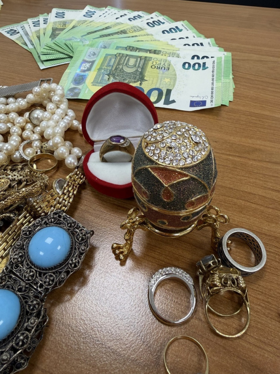 Zaplenjeno je više od 106.000 evra i skoro 1,7 kilograma zlatnog nakita, 11 satova, biseri, 144 raznih novčića i dve ukrasne kutije od kojih je jedna u obliku Faberžeovog jajeta.