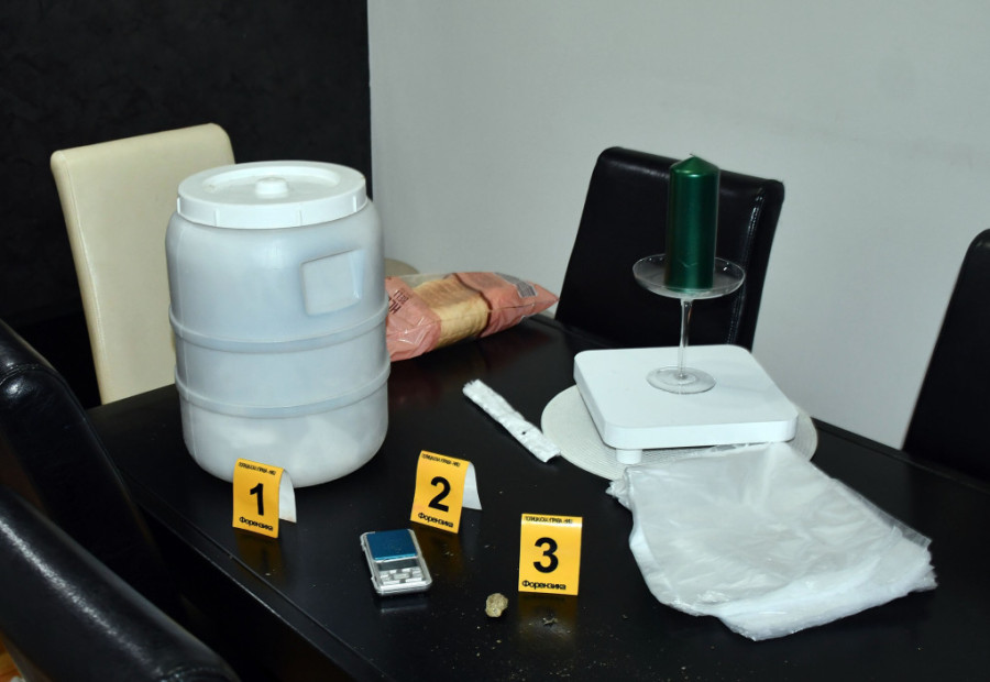 Pretresom stana i drugih prostorija koje A. P. koristi, policija je pronašla sedam paketa sa oko 1,8 kilograma materije za koju se sumnja da je marihuana i vagicu za precizno merenje.