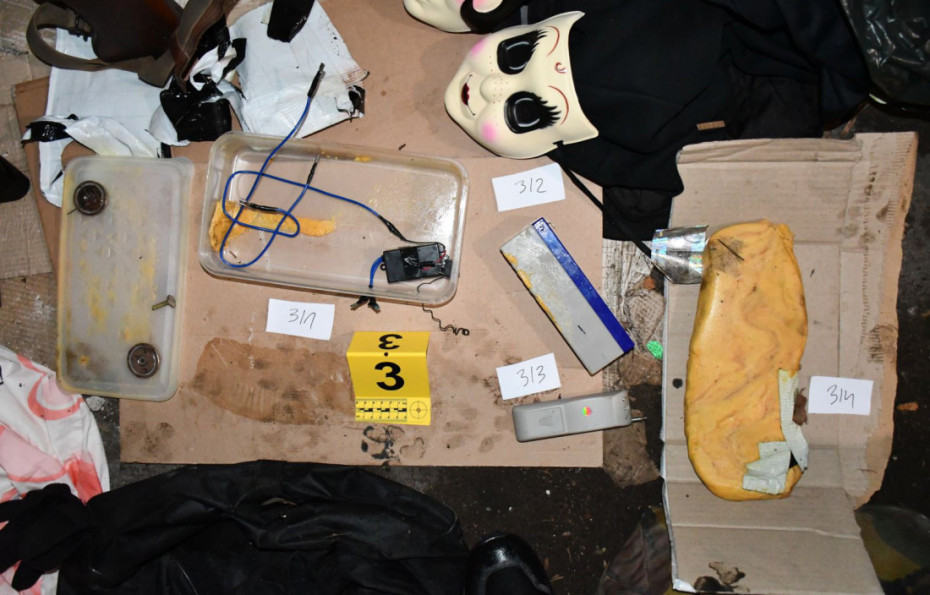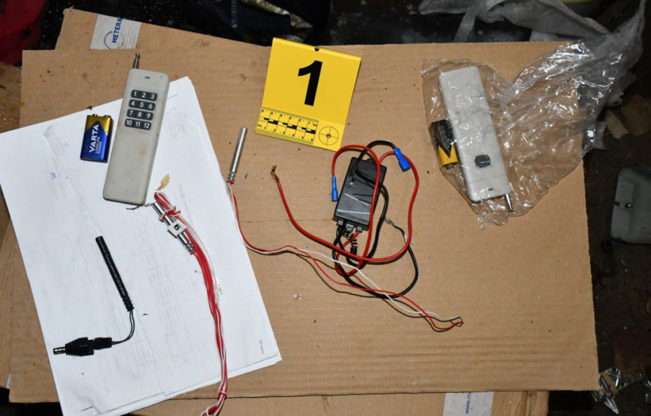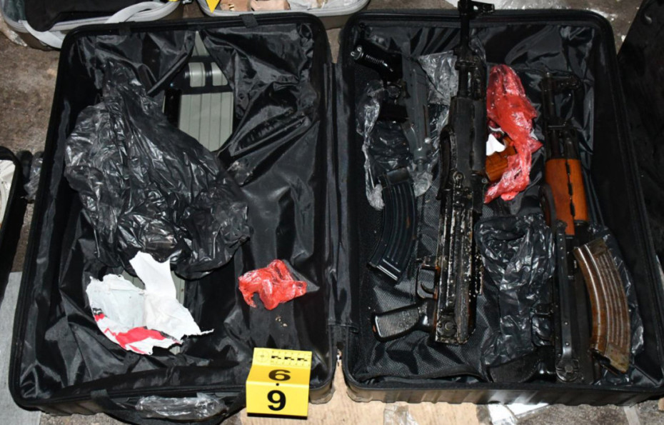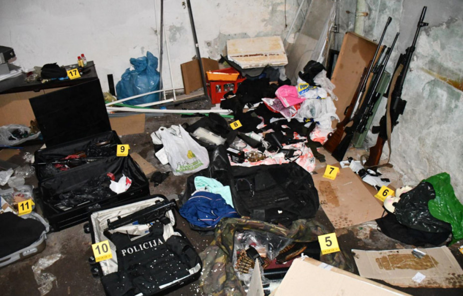 U saopštenju se navodi da je tokom opsežne policijske akcije, pretresom stana, drugih prostorija i garažnog prostora, pronađene su i zaplenjene dve improvizovane eksplozivne naprave sa daljinskim aktiviranjem i pratećom opremom, puškomitraljez, snajperska puška, pet automatskih pušaka, tri automatska pištolja (hekler, uzi i škorpion), dva poluautomatska pištolja, revolver, protivpešadijska mina usmerenog dejstva, lovačka karabinska puška, kao i pet prigušivača za automatsko oružje.