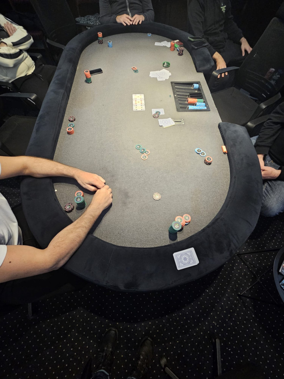 Privremeno je zaplenjena oprema za poker igre, i to pet stolova, čipovi koji su zatečeni u igri na stolu ukupne vrednosti 8.349 apoena, čipovi za igru zatečeni van stolova vrednosti 1.295.581 apoena, te 285 pakovanja karata za poker, kao i gotovina u iznosu od 7.650 evra za koje se sumnja da potiču od nelegalnog priređivanja igara na sreću.