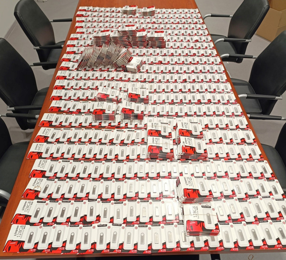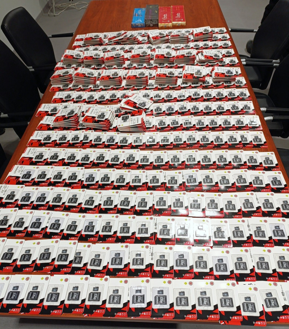 Carinski službenici su u subotu na graničnom prelazu Aerodrom Nikola Tesla privremeno zadržali 1.100 memorijskih kartica i fleš memorija, kao i 40 paklica cigareta, čija je vrednost procenjena na više od 9.000 američkih dolara.