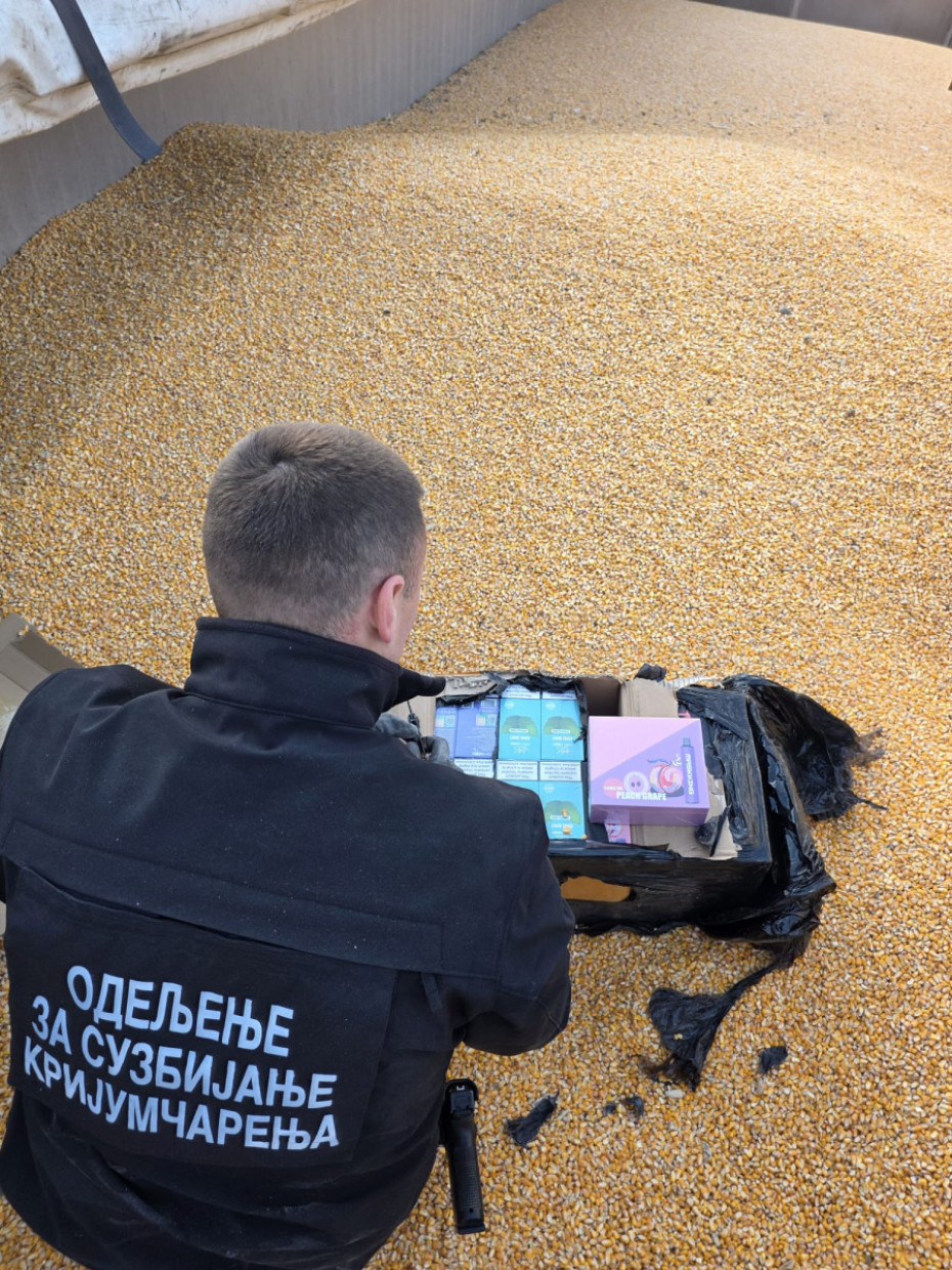 Na graničnom prelazu Gostun Uprava carina sprečila je pokušaj krijumčarenja patika i elektronskih cigareta u tovaru merkantilnog kukuruza, saopšteno je iz Uprave carina.