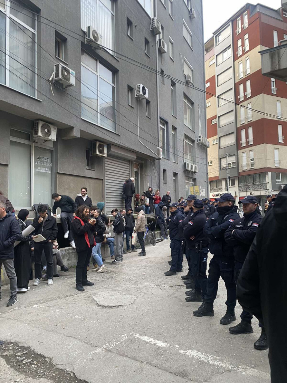 Dok je trajao postupak, ispred zgrade suda i tužilaštva okupilo se nekoliko desetina građana koji su došli da pruže podršku uhapšenim studentima, dok su samu zgradu obezbeđivale jake policijske snage.