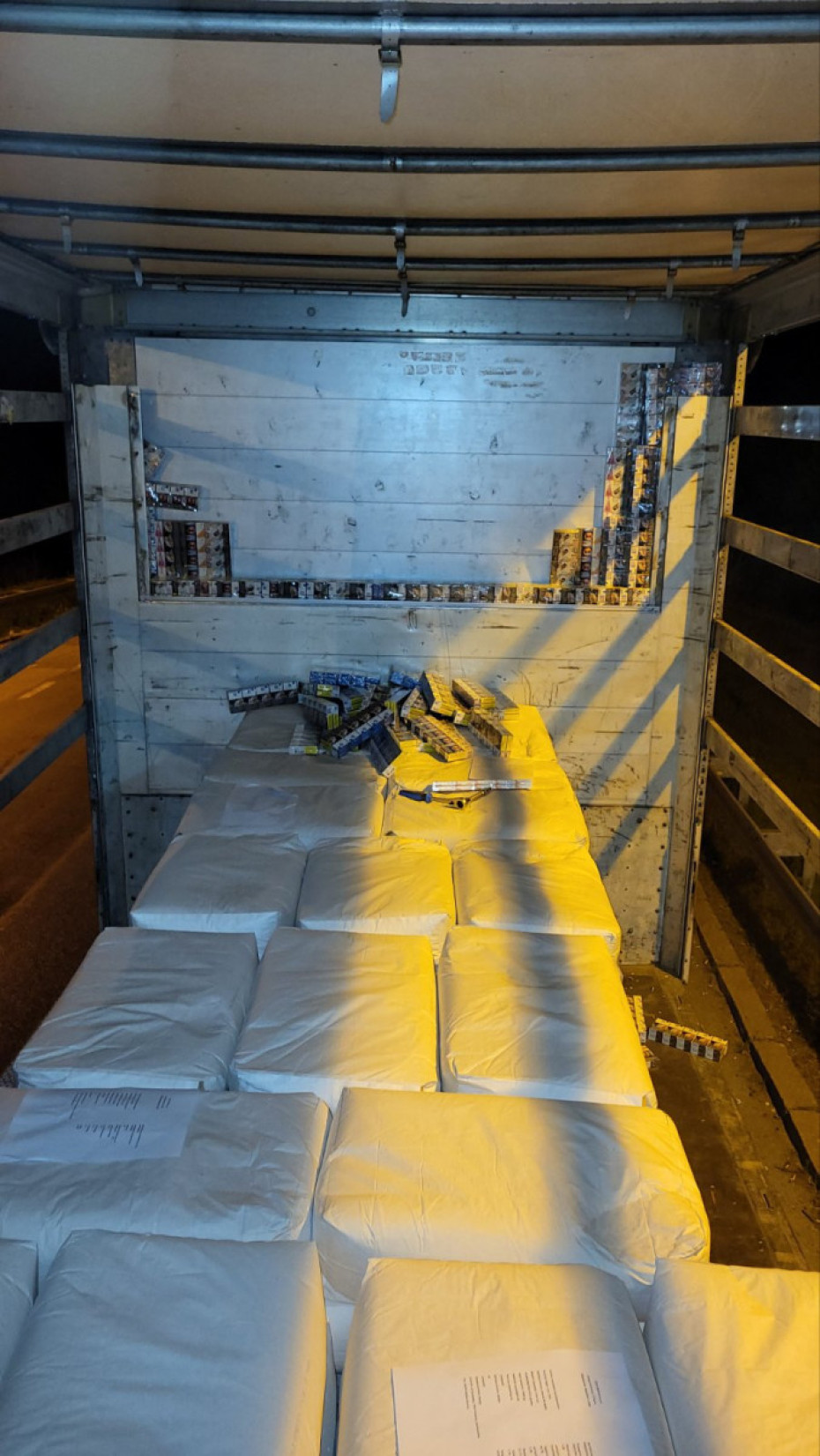 Detaljnom kontrolom kamiona kojim je prevožen tovar brašna, utvrđeno je da je vozilo prepravljeno, te da se u duplim stranicama i podu prikolice krije ukupno 19.960 paklica cigareta raznih robnih marki.