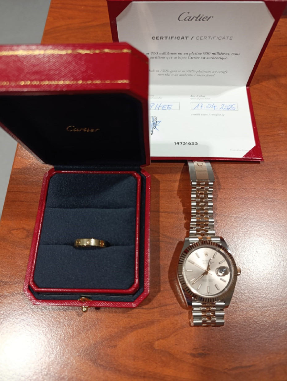 Tokom detaljne kontrole otkriveno je da na sebi nose po jedan novi luksuzni sat marke "Rolex Rosegold Datejust" i "Rolex Sky Dweller", kao i po jedan prsten marke "Cartier", dok se pripadajuća dokumentacija nalazila u rancu jednog od njih.