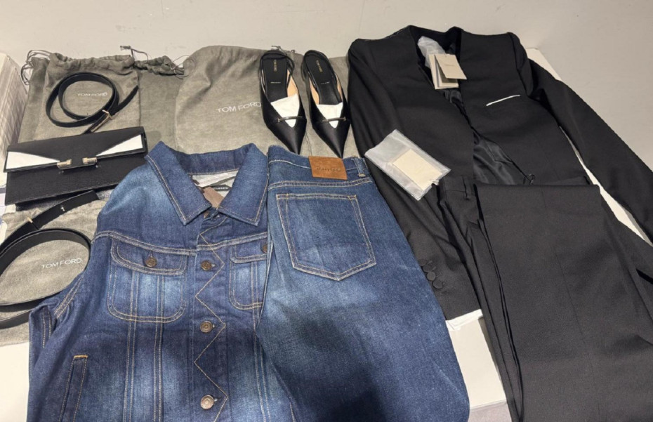 U prtljagu su tada otkriveni prsten i minđuše od belog zlata sa dijamantima marke ''Messika'', ženska tašna, kaiš, cipele i pet ženskih odevnih predmeta marke ''Tom Ford'', kao i kaiš, dva para patika i 19 muških odevnih predmeta marke ''Boggi''.