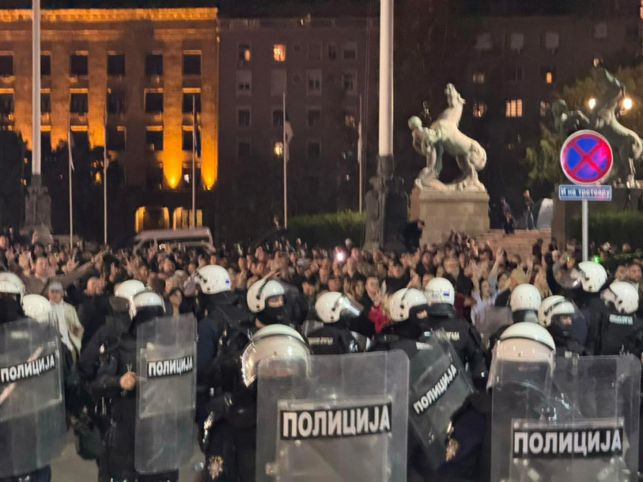Na uglu Kneza Miloša i Bulevara kralja Aleksandra, pripadnici intervetne jedinice policije, oko 14.30 časova su intervenisali - potisnuli su građane koji su došli da podrže Dijanu Hrku, koja je kod parlamenta započela štrajk glađu.